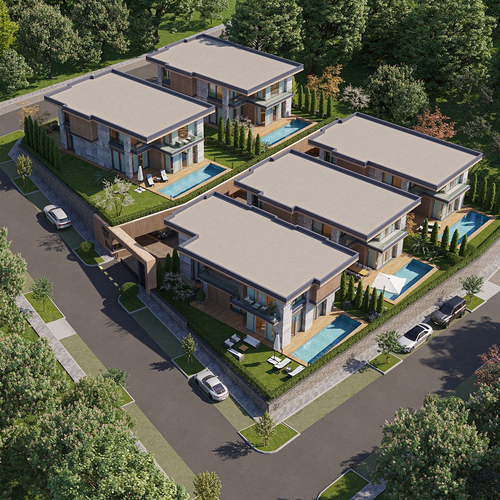 Nilüfer Proje Tasarım’ın Nilüfer Evleri Özlüce Vilları’nı daha etkili tanıtmak ve projeyi anlatabilmek için 360 derece gökyüzü çekimlerini kullandık.