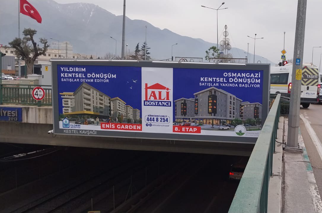 Bursa’da en çok kişiye ulaşan ve binlerce aracın altından geçtiği en özel lokasyonlarda yer alan, sabah ve akşam trafiğinde araçların altından yavaşça gittiği köprü alınlık reklamlarında markanızı görmeyi bir hayal edin. İster hizmetlerinizi isterseniz ürünlerinizin tanıtımını tüm Bursa’ya yapabilir, marka bilinirliğinizi arttırabilirsiniz.